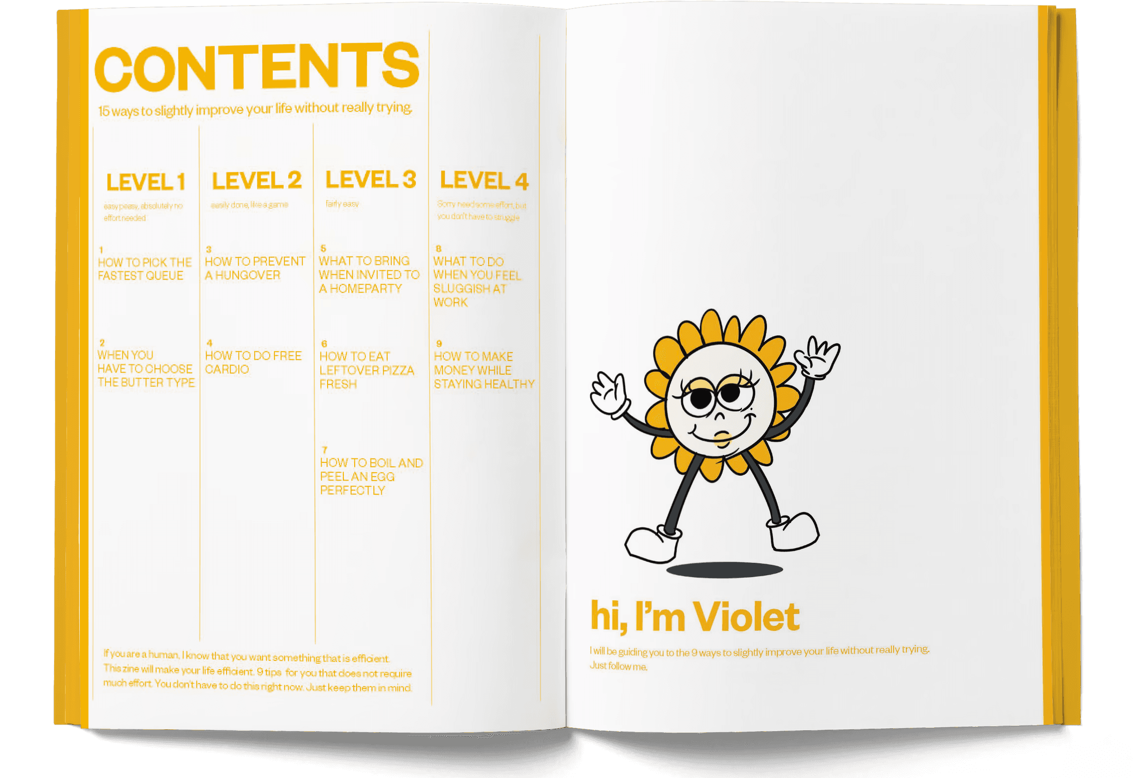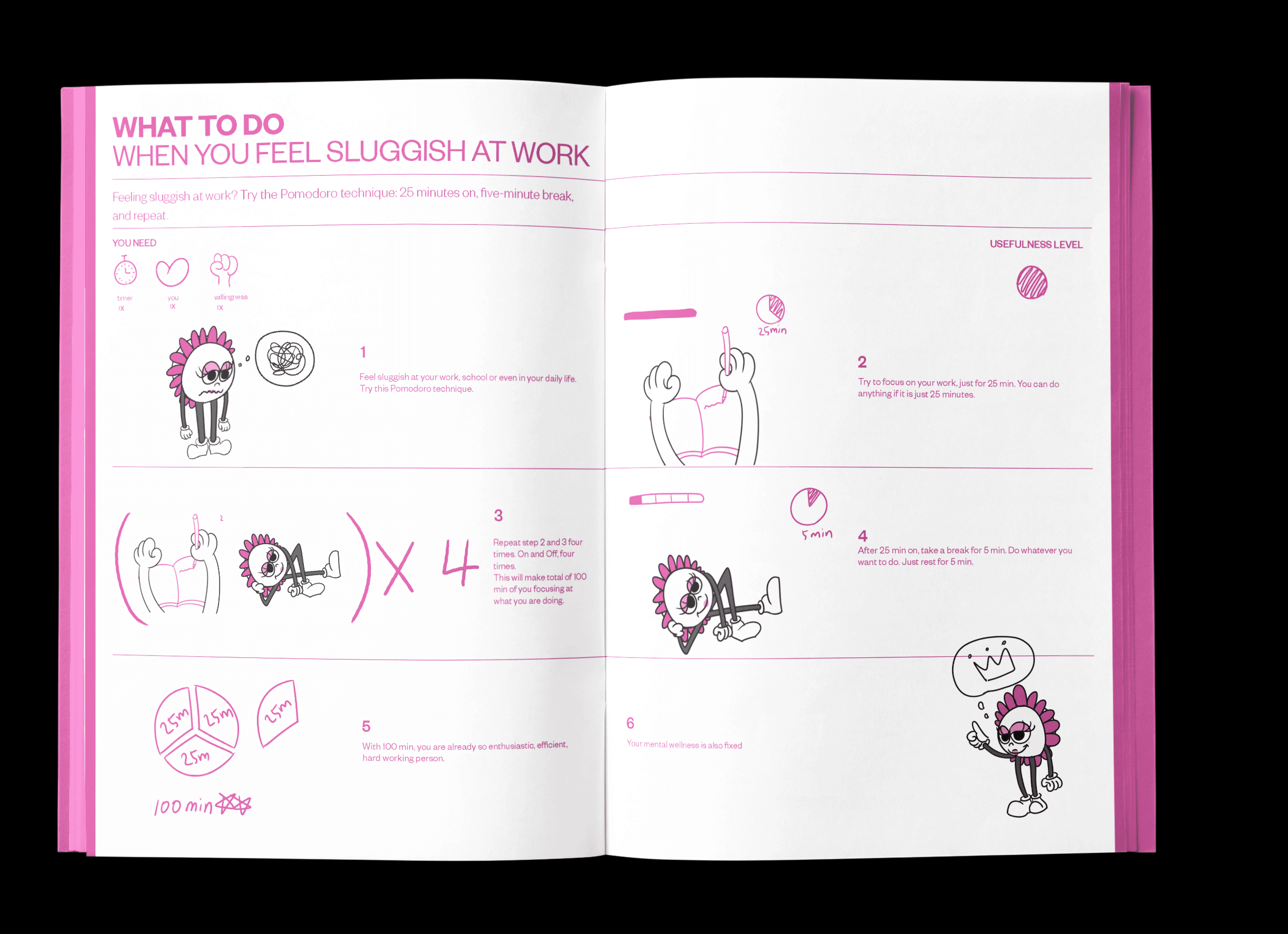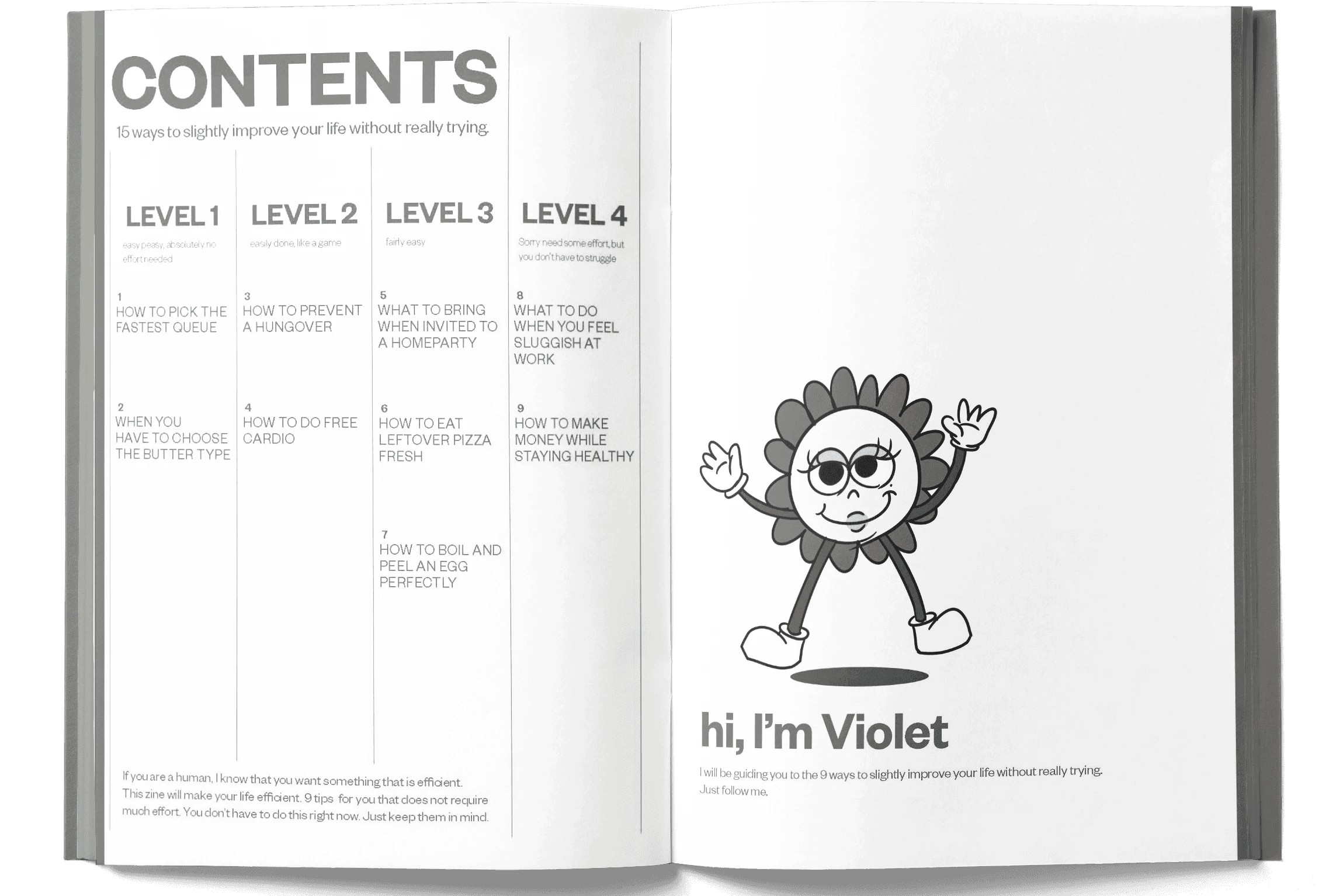 Life Tip Book is an editorial zine that delivers everyday advice through a character-driven visual and typographic system. Designed from concept to production, the project includes content creation, illustration, layout, and hand-crafted binding.