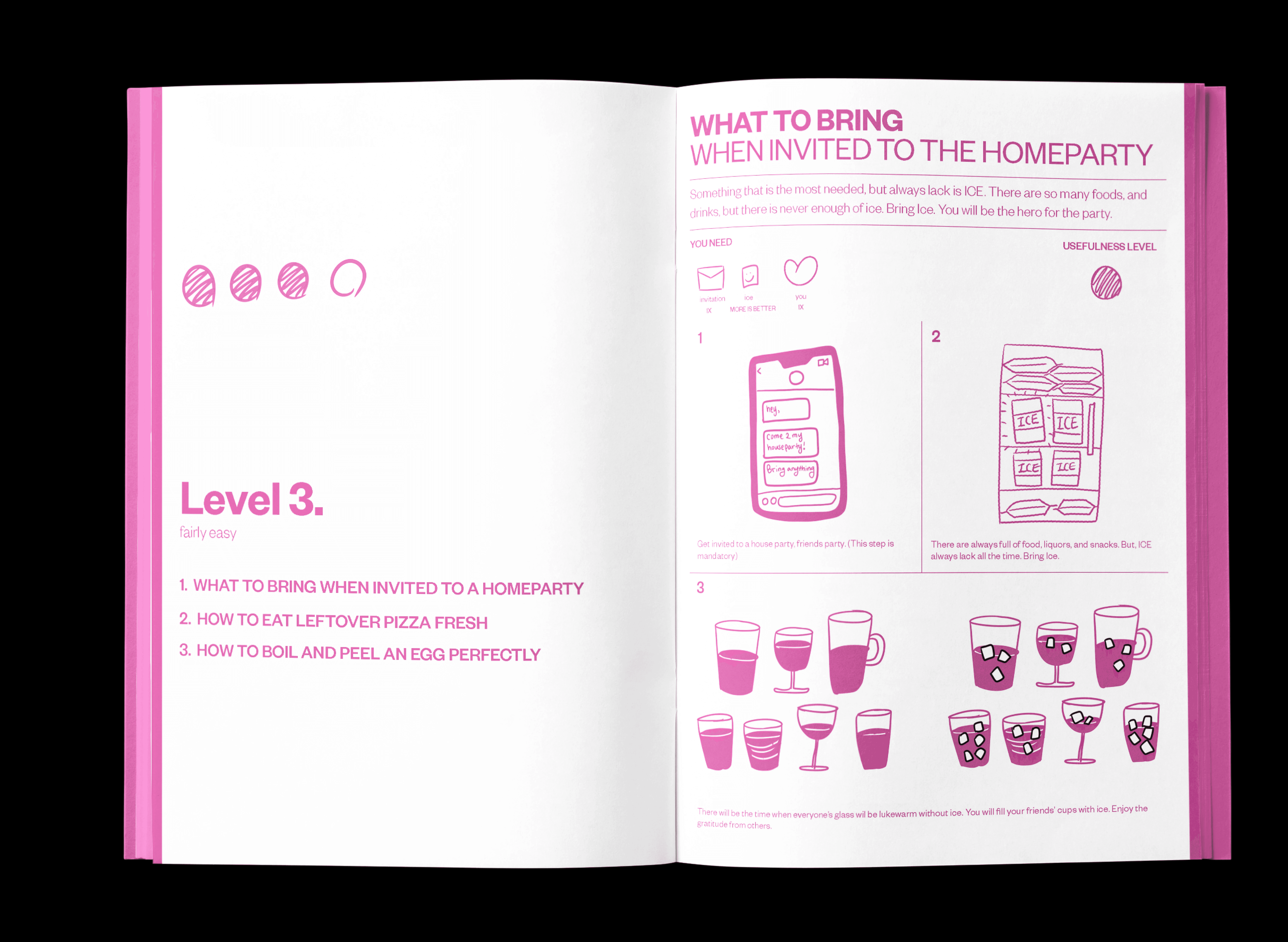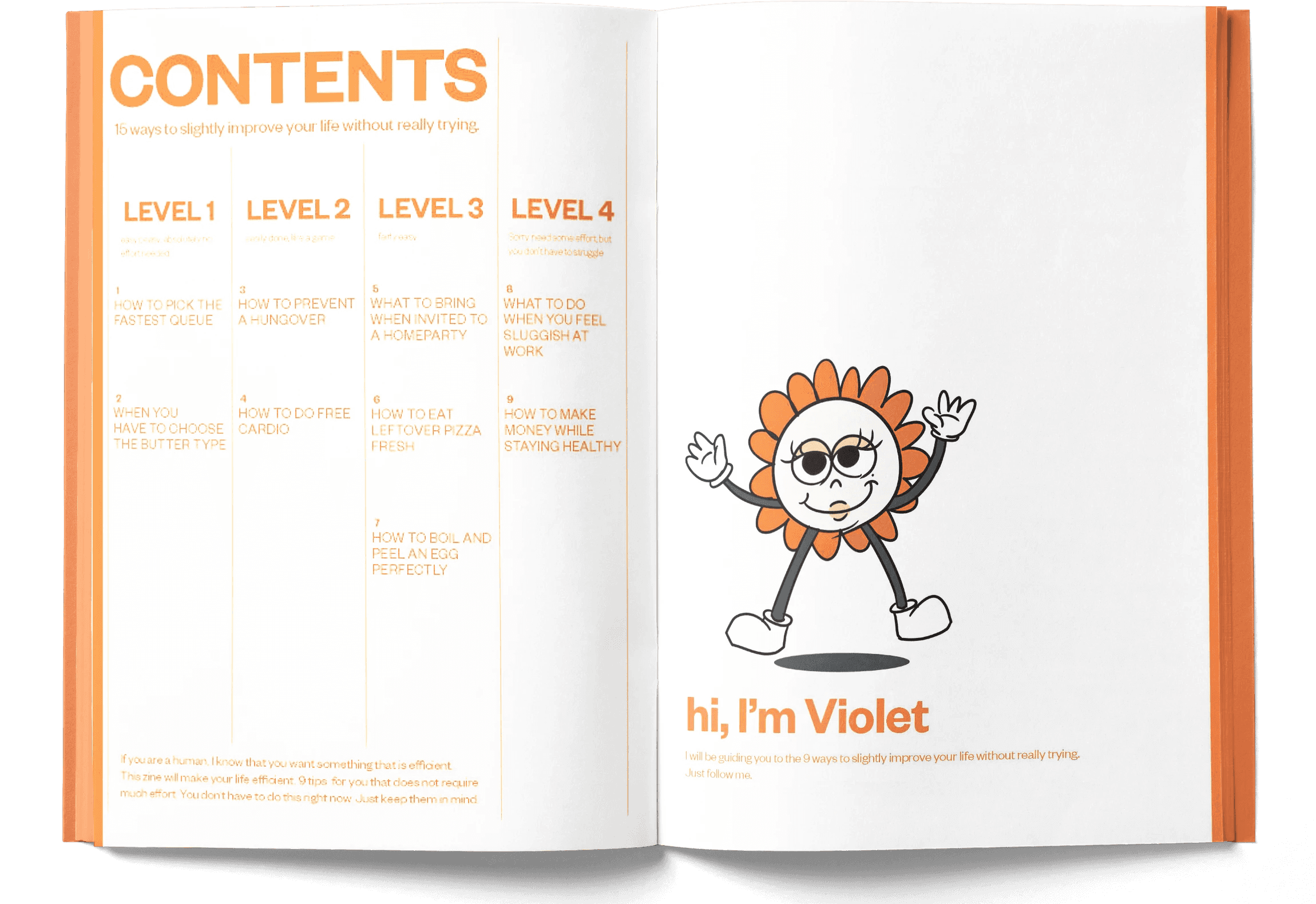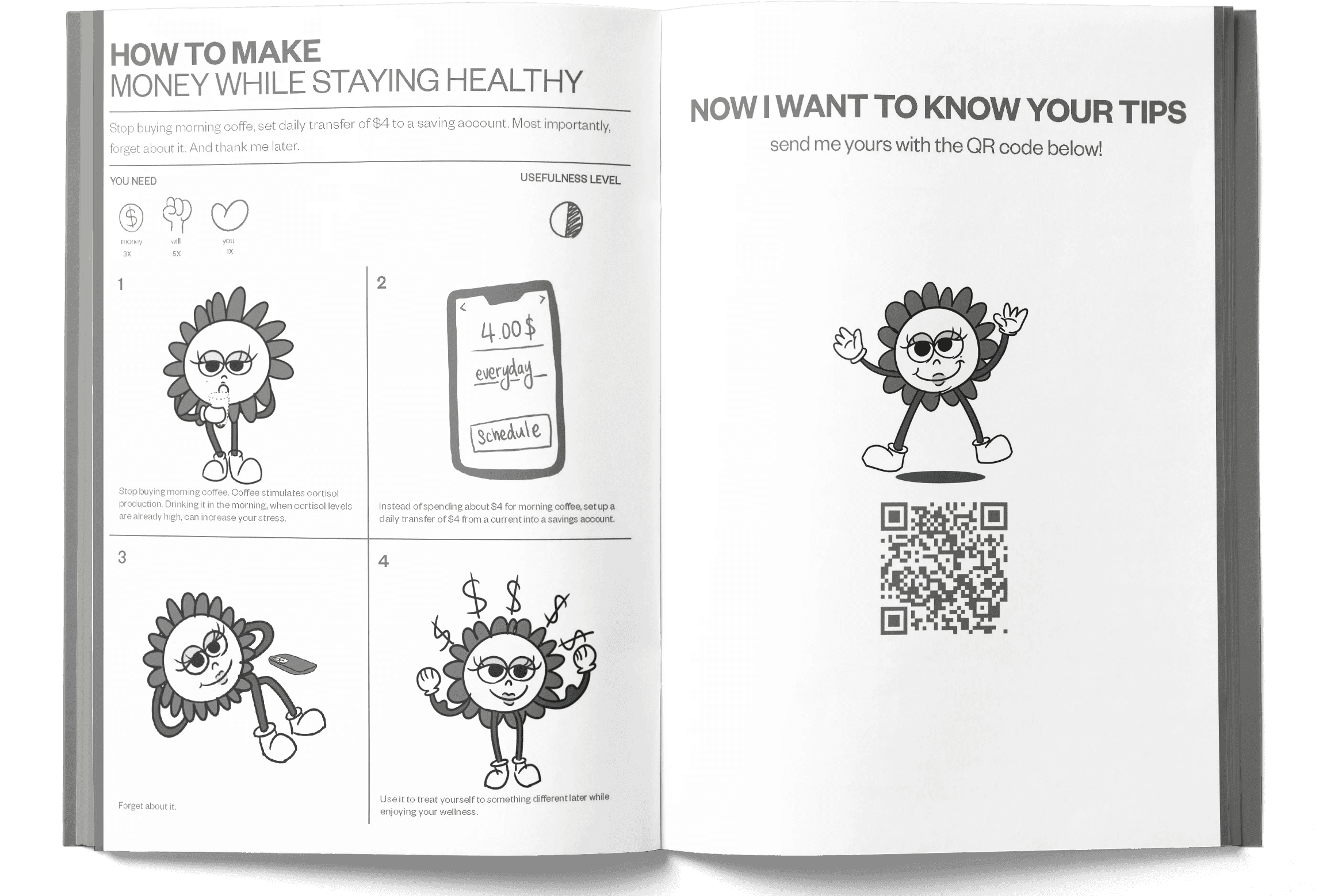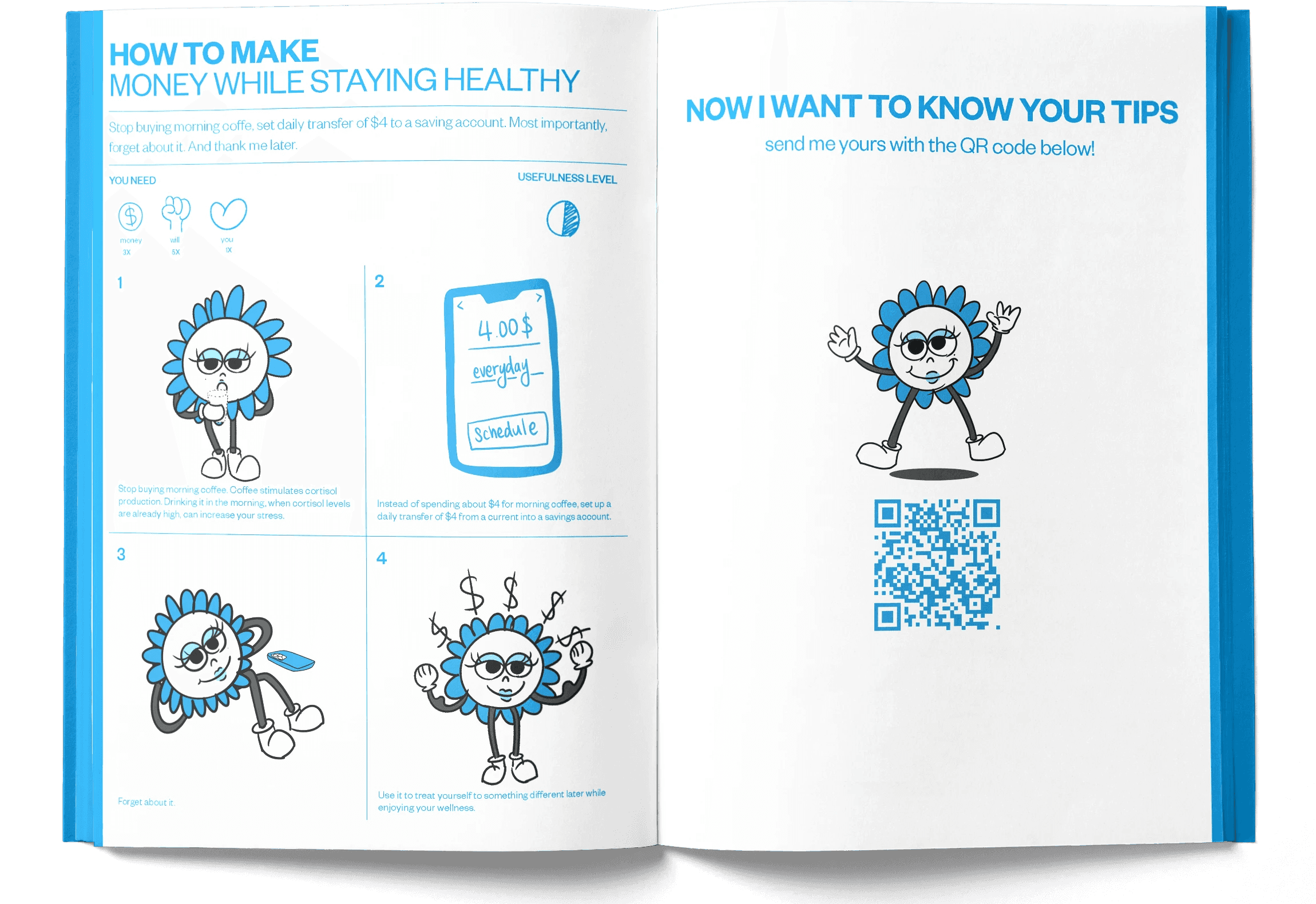 Life Tip Book is an editorial zine that delivers everyday advice through a character-driven visual and typographic system. Designed from concept to production, the project includes content creation, illustration, layout, and hand-crafted binding.