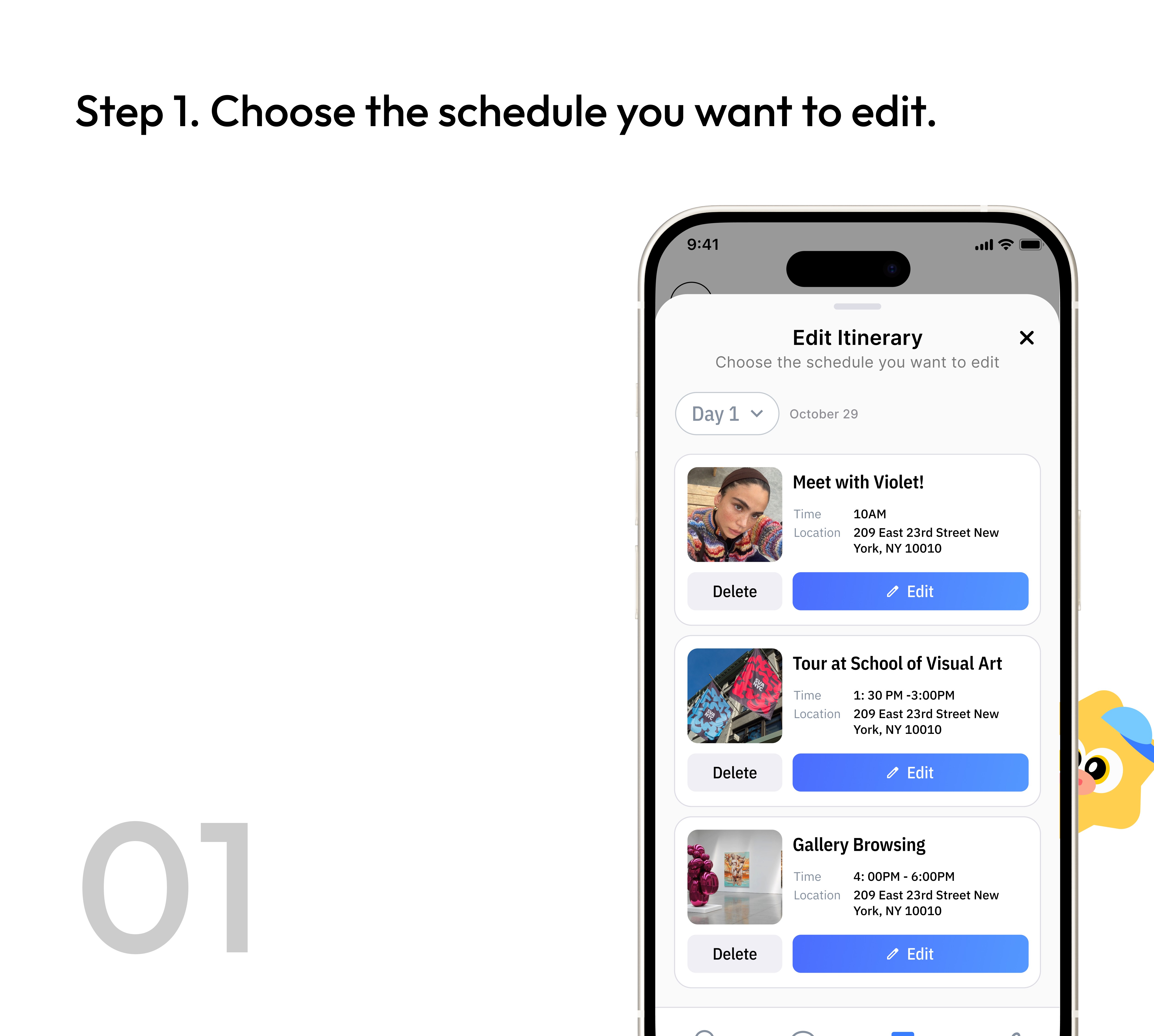 To help the solo travelers enjoy tailored schedule, Locale provides the opportunity to edit the schedule with the local. Check the steps below.