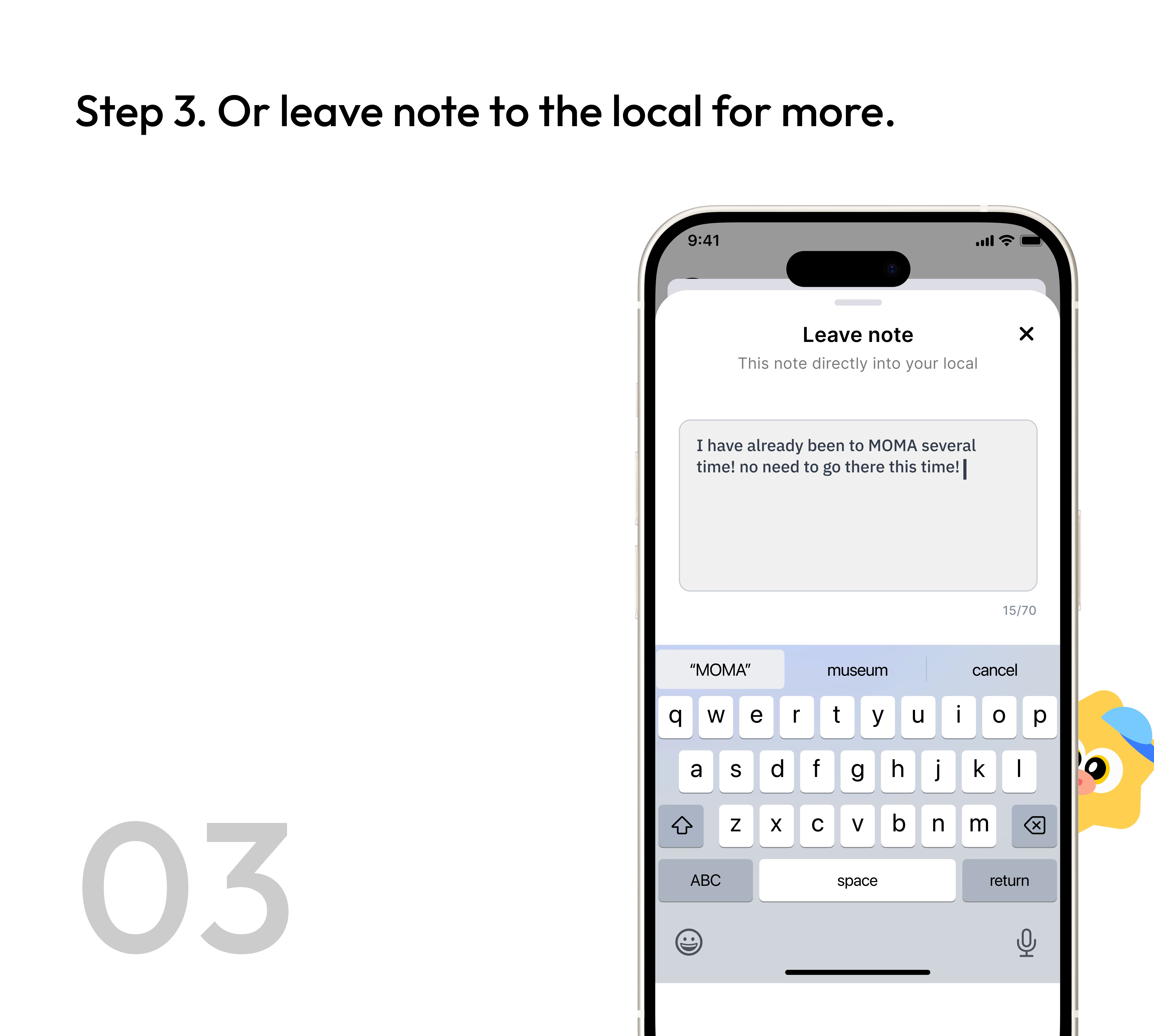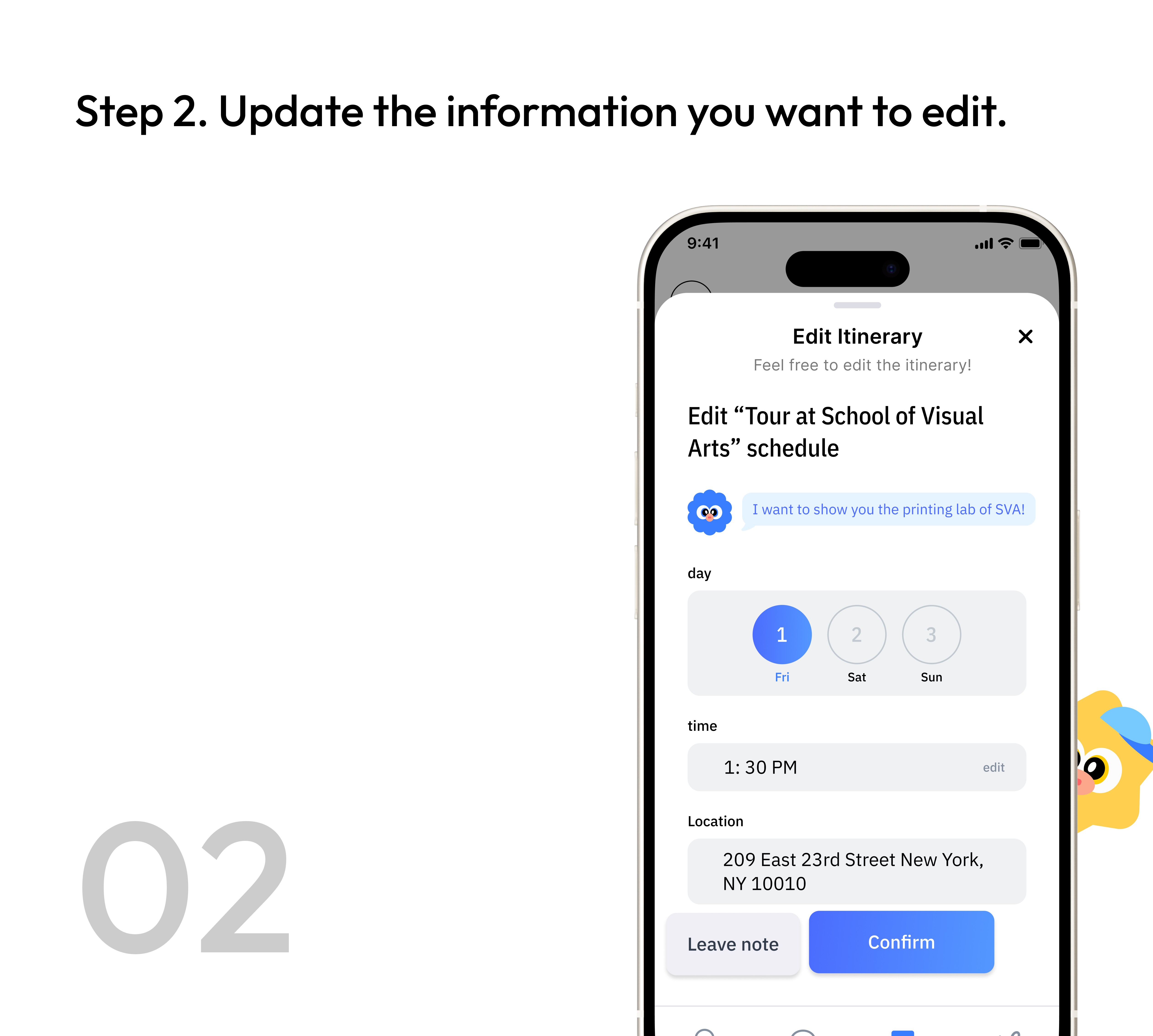 Once travelers match with locals, they can collaboratively design their itinerary. Editing times, adding notes, or suggesting swaps in real-time. This turns what used to be a lonely planning process into a shared, interactive dialogue.