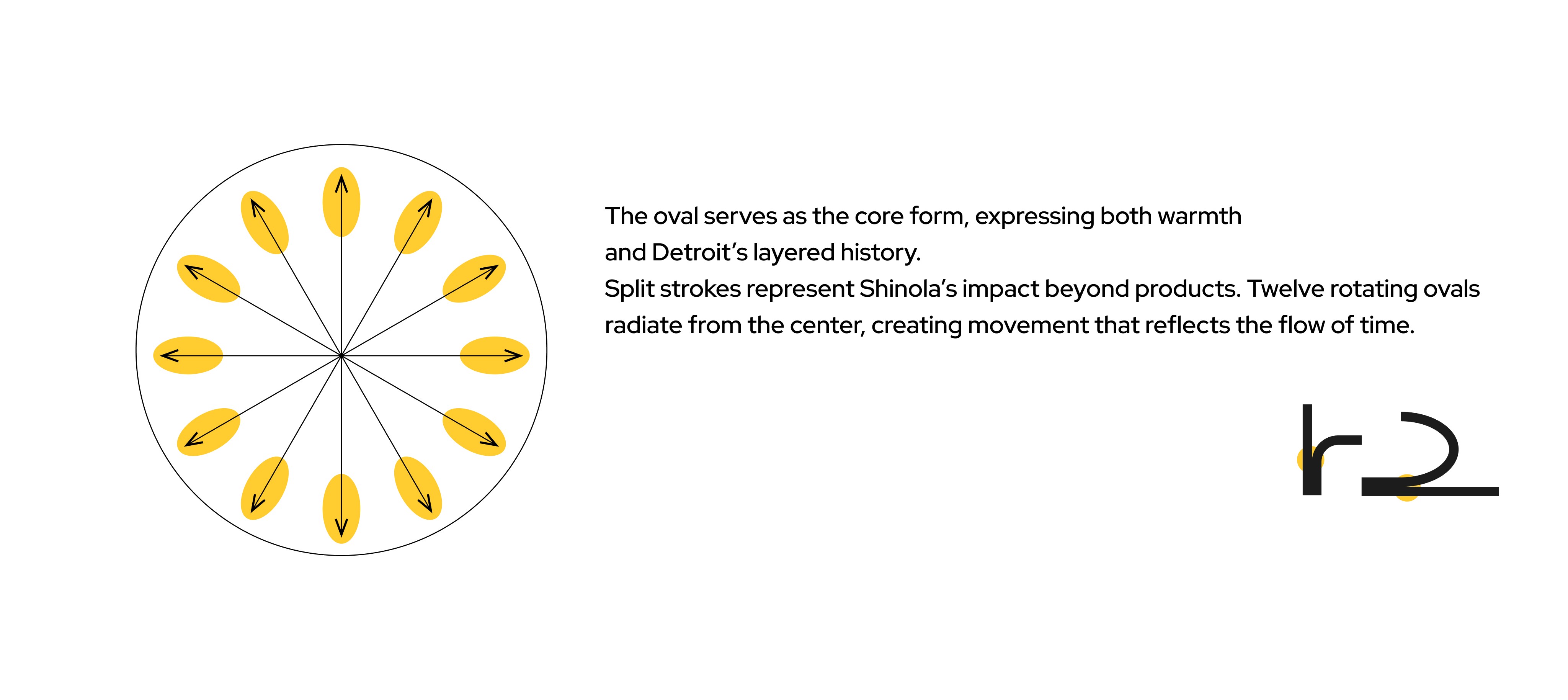 Shinola Ovale is a branding project for a conceptual watch inspired by Shinola’s Detroit heritage and precision craftsmanship. Centered on the oval form, the identity reflects continuity and mechanical precision. A restrained graphic system translates the watch’s geometry into a clear and timeless brand experience.